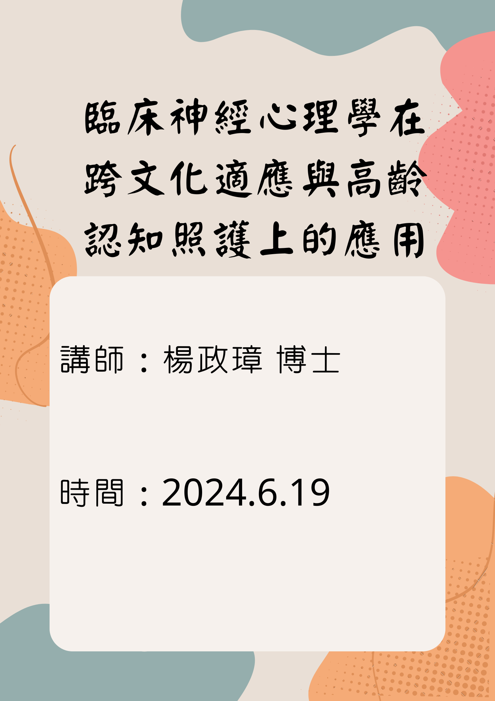 臨床神經心理學在跨文化適應與高齡認知照護上的應用