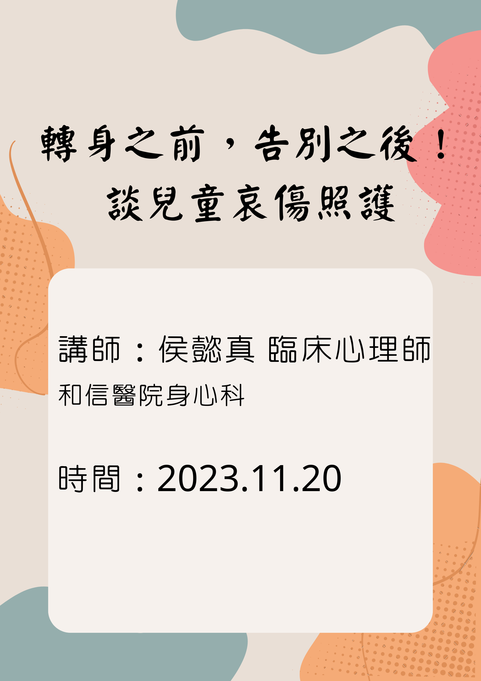 「轉身之前,告別之後!談兒童哀傷照護」